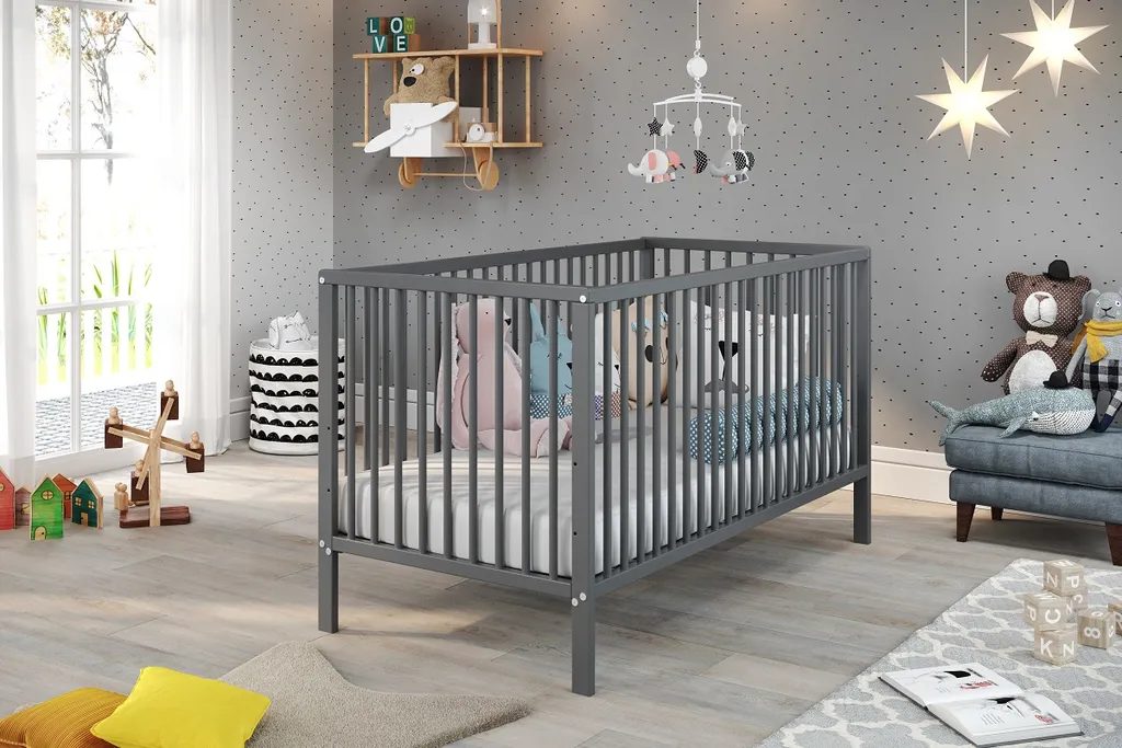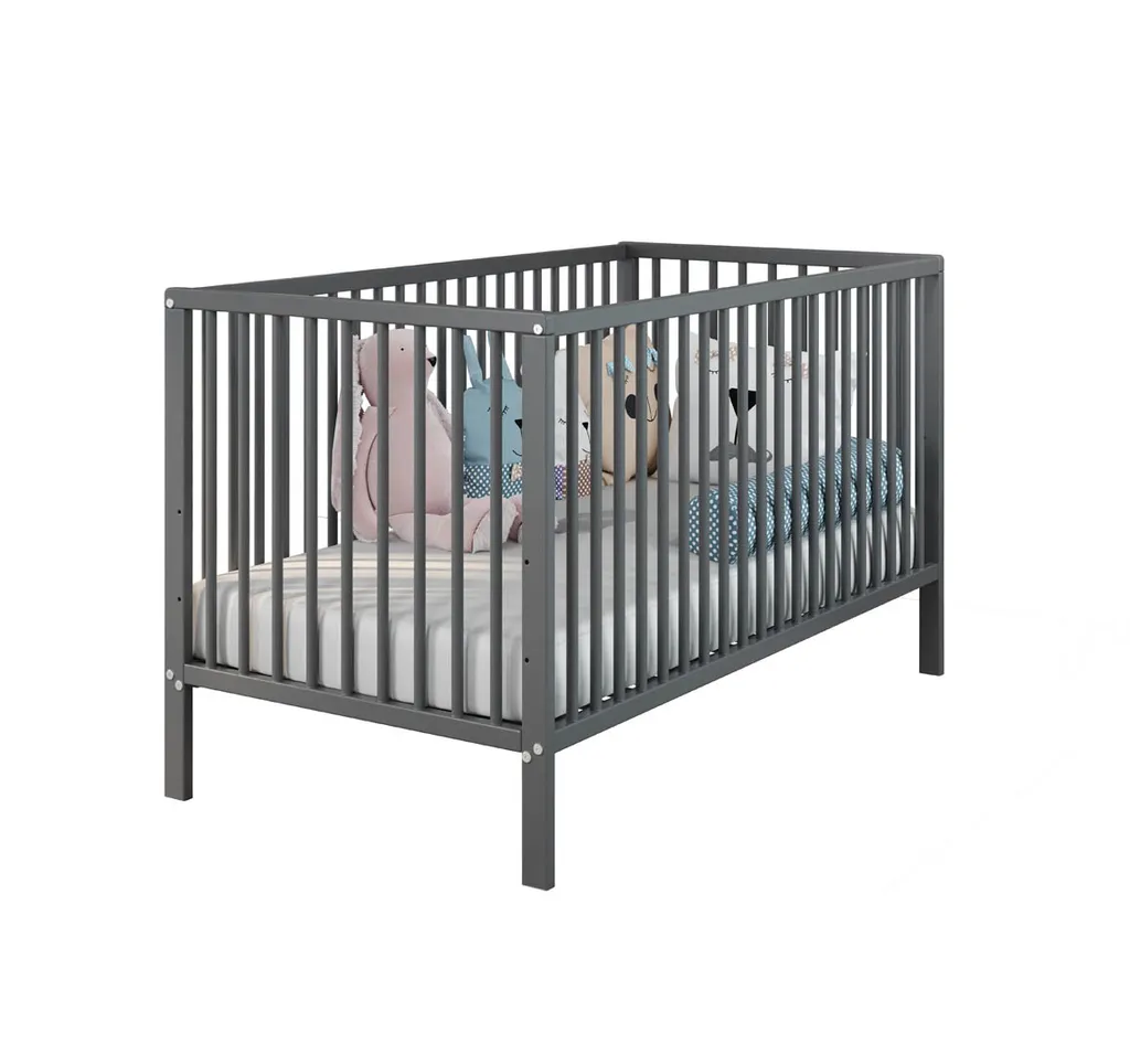 Babybett Babyzimmer Universal | Grau Matt Massiv
