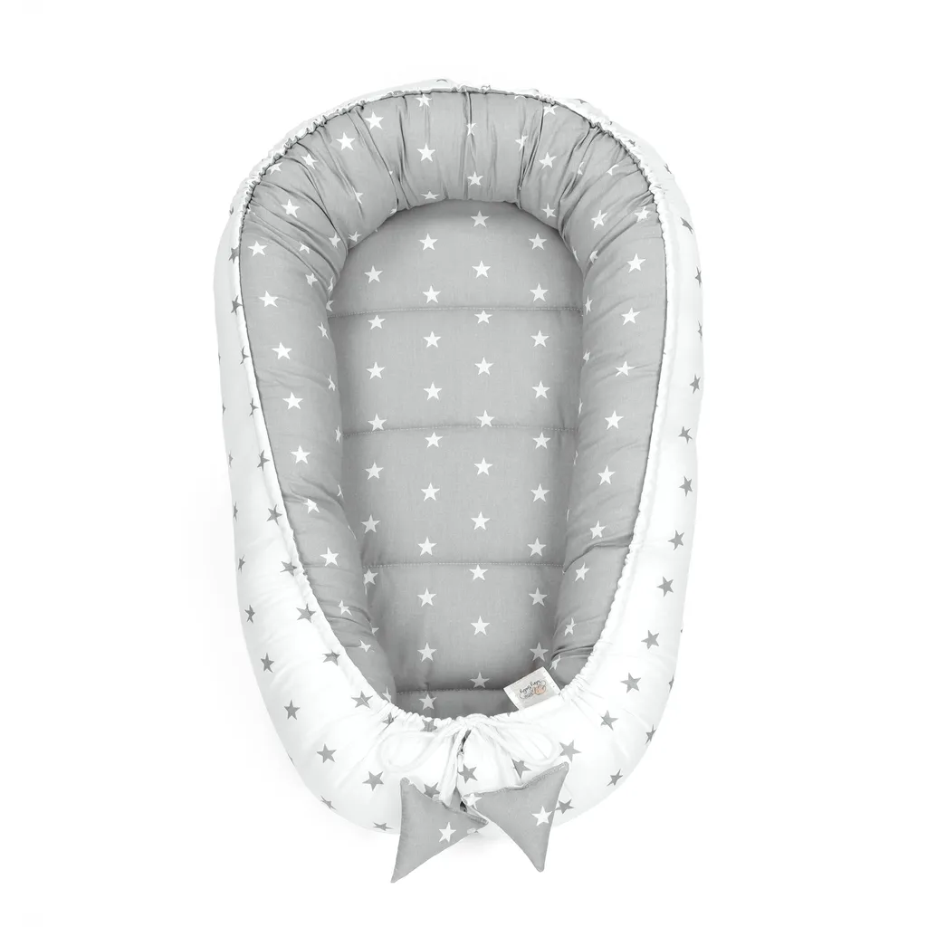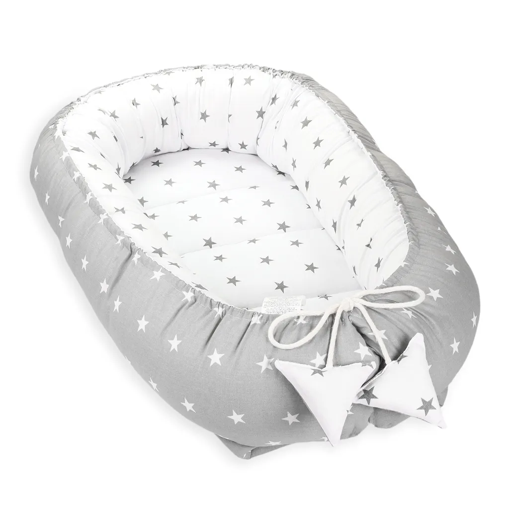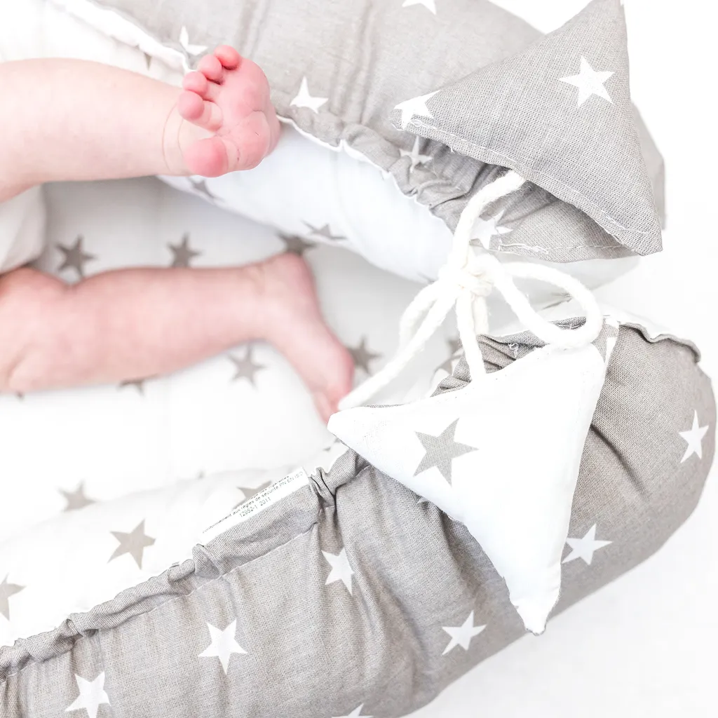 Babynest Kokon Neugeborene 90 X 50 Cm – Handmade Kuschelnest Baby Nestchen Aus Baumwolle Sternchen Grau-Weiß