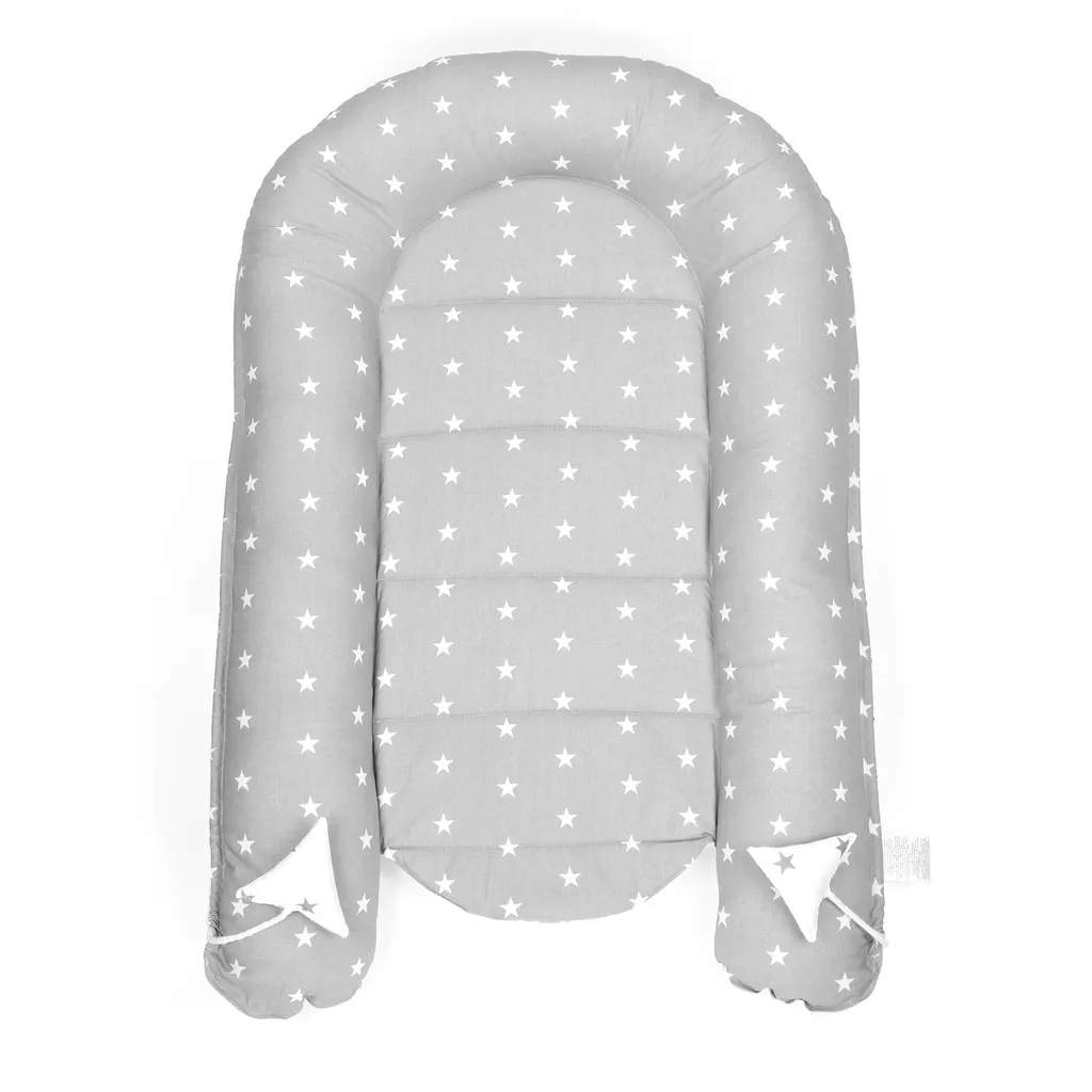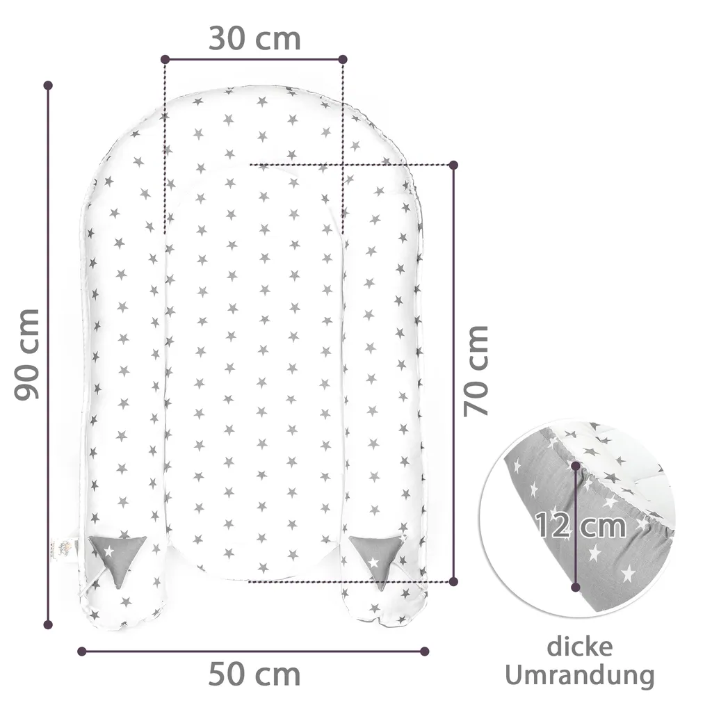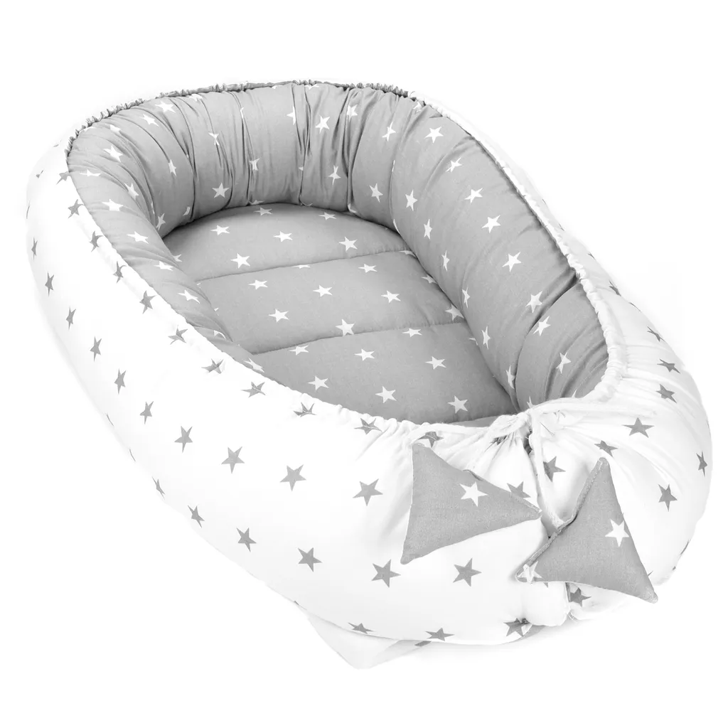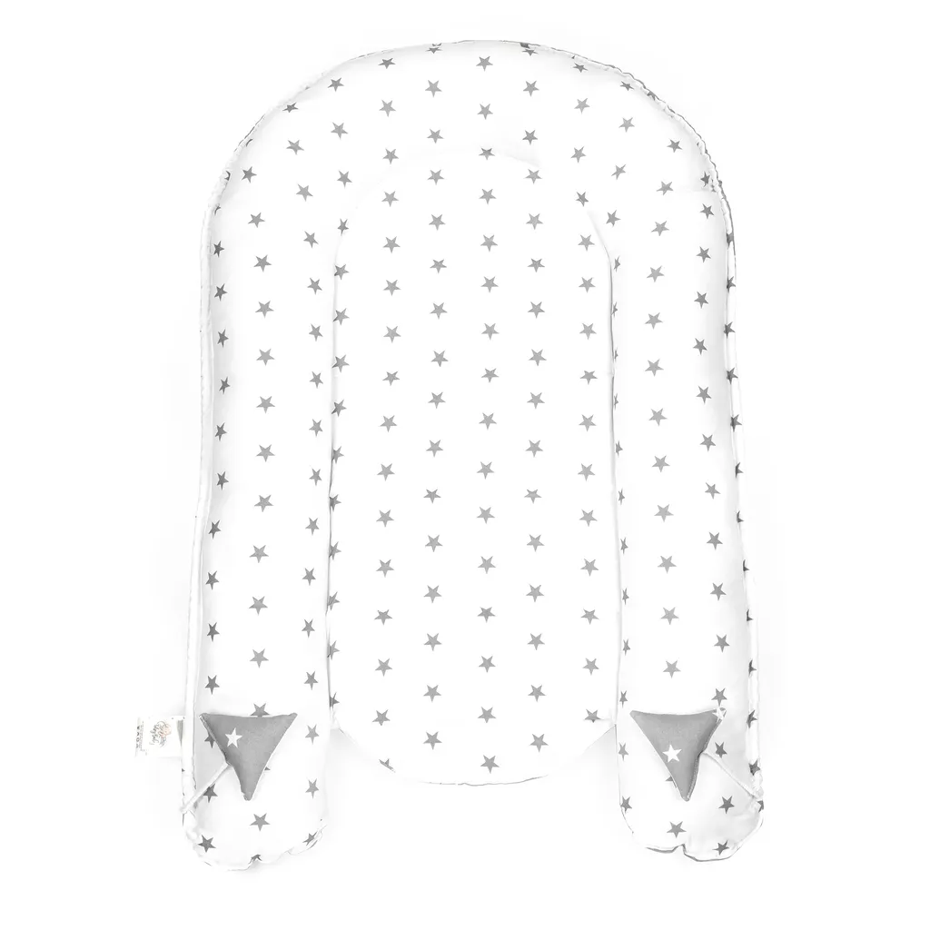 Babynest Kokon Neugeborene 90 X 50 Cm – Handmade Kuschelnest Baby Nestchen Aus Baumwolle Sternchen Grau-Weiß