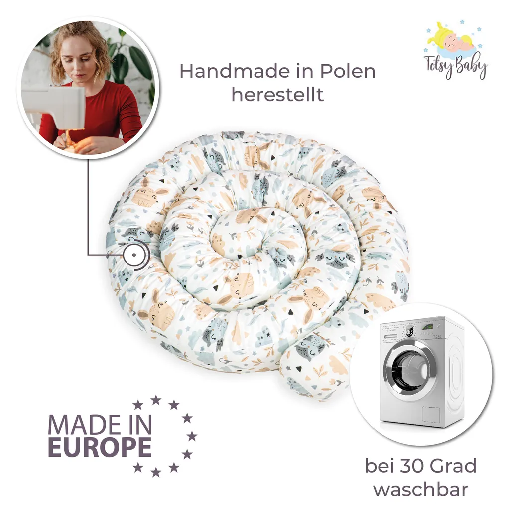 Bettschlange 150 Cm Nestchenschlange Für Baby Bettrolle 1,5m Bettumrandung Babybettschlange Baumwolle Eulen Und Hasen