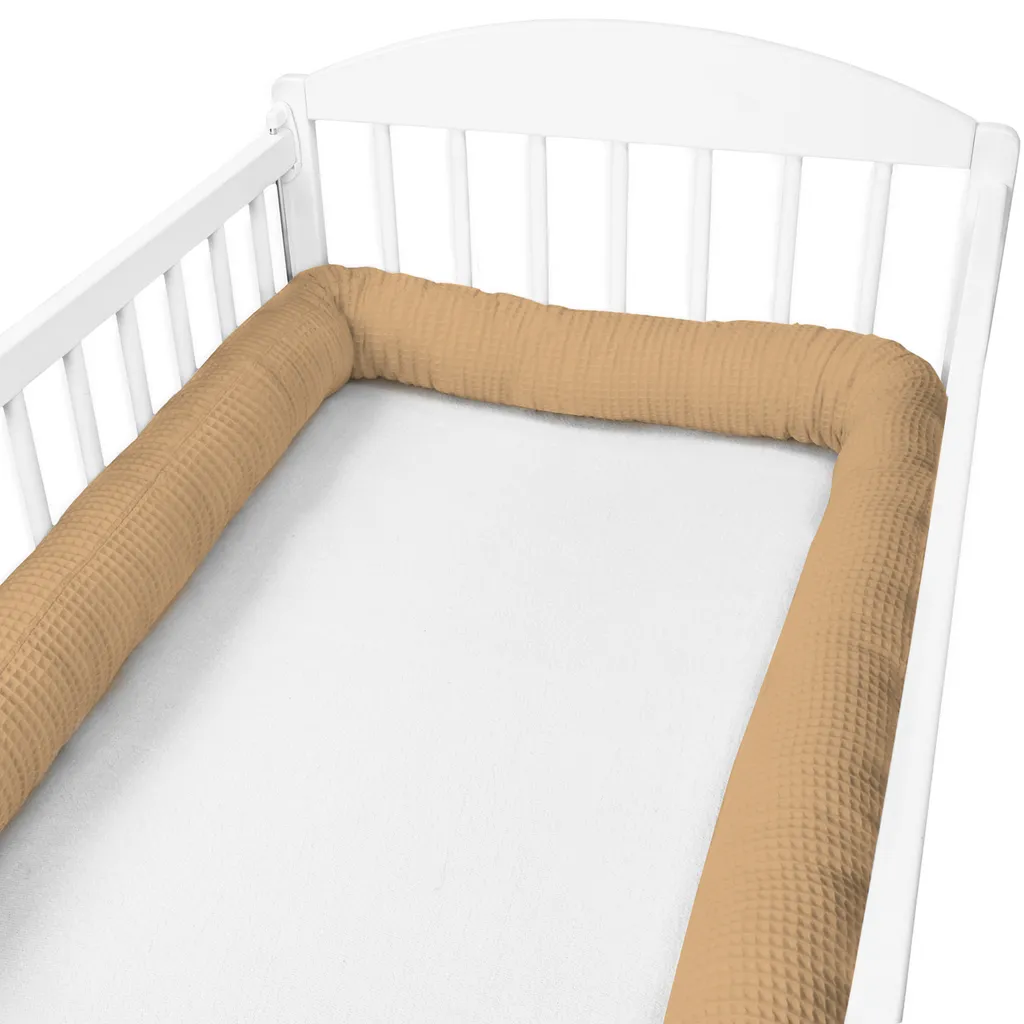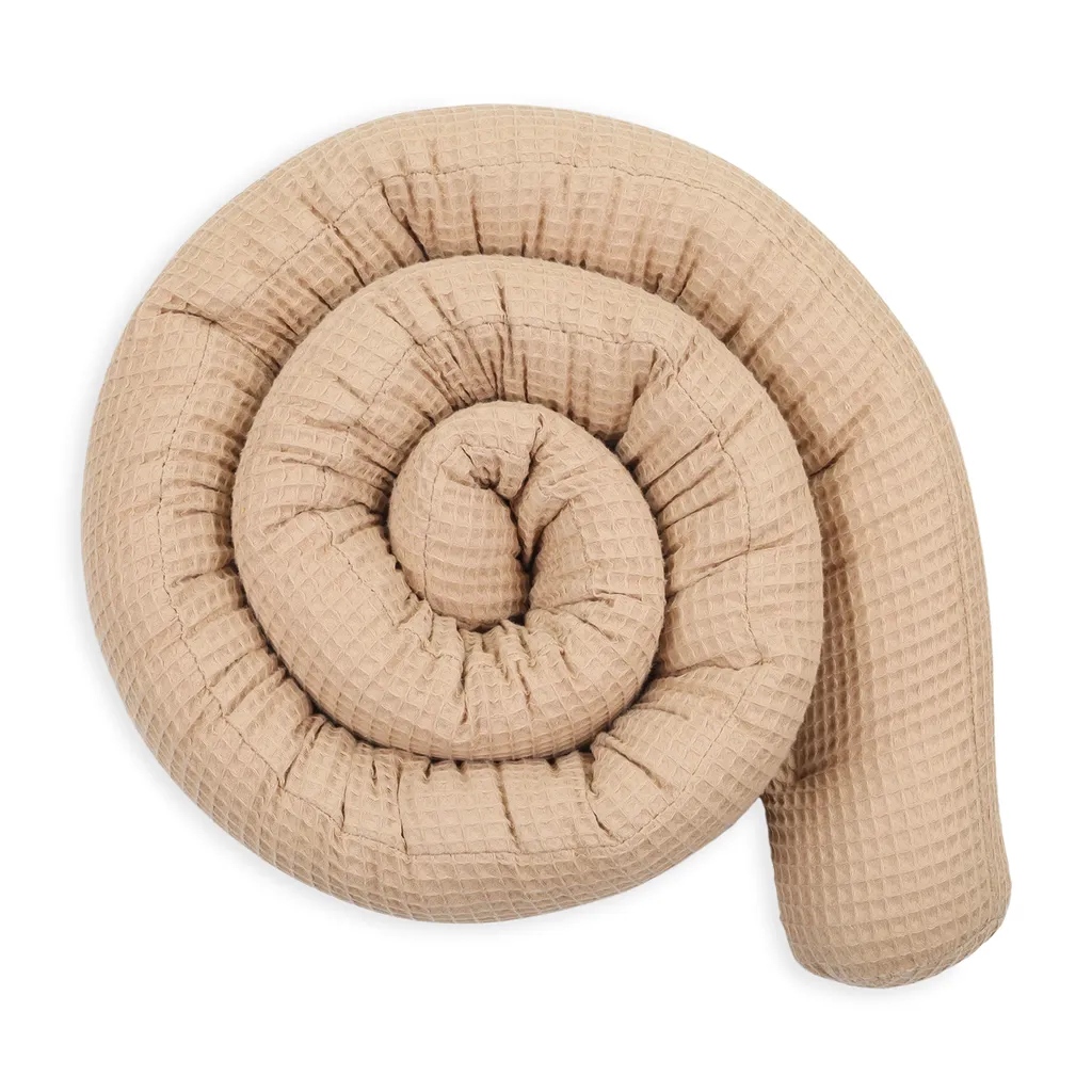 Bettschlange Baby Bettumrandung 400 Cm – Waffelbaumwolle – Nestchenschlange Bettrolle Für Babybett Gitterbett Beistellbett Umrandung Braun