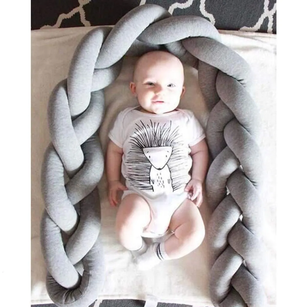 Bettschlange Baby Geflochten Bettumrandung Bettrolle Für Babybett Nestchen Schlange Nestchenschlange Grau Zopf Mit Drei Strängen (Grau, 100 * 13 * 7 Cm)