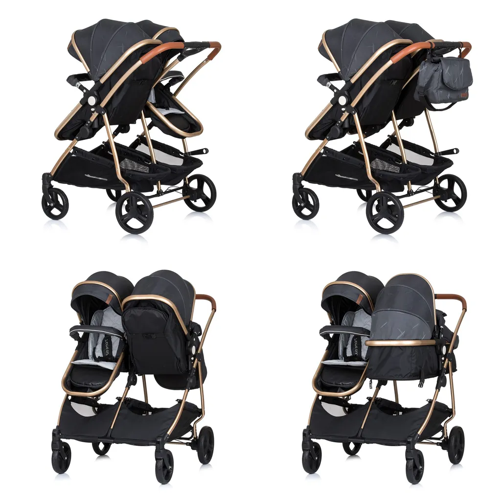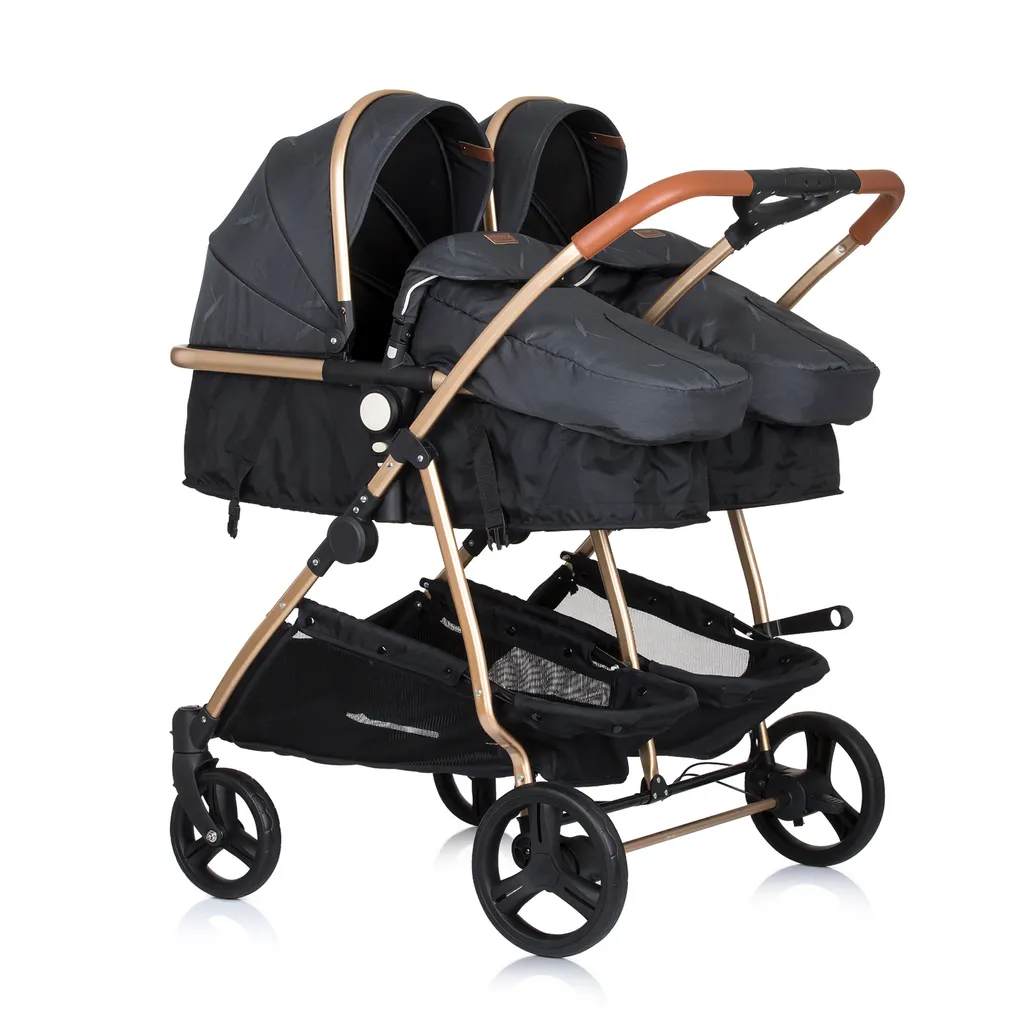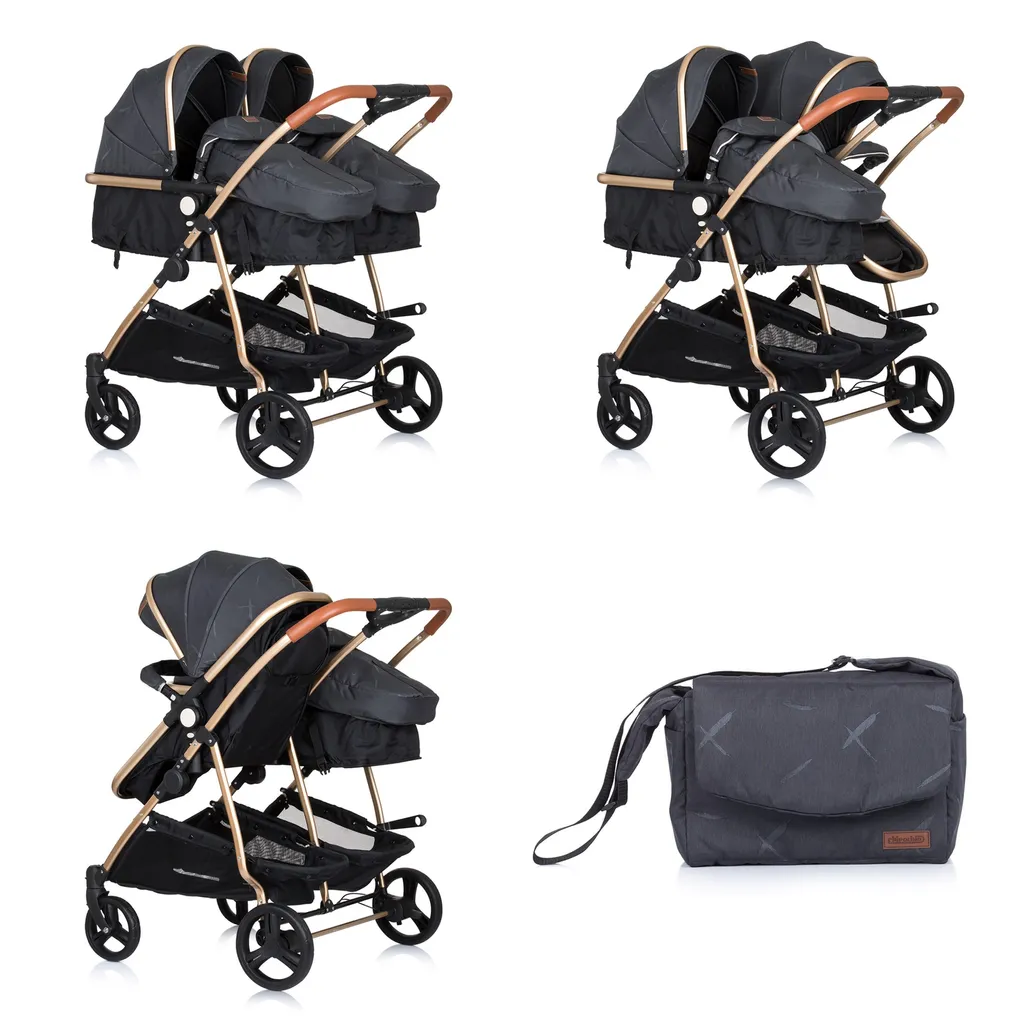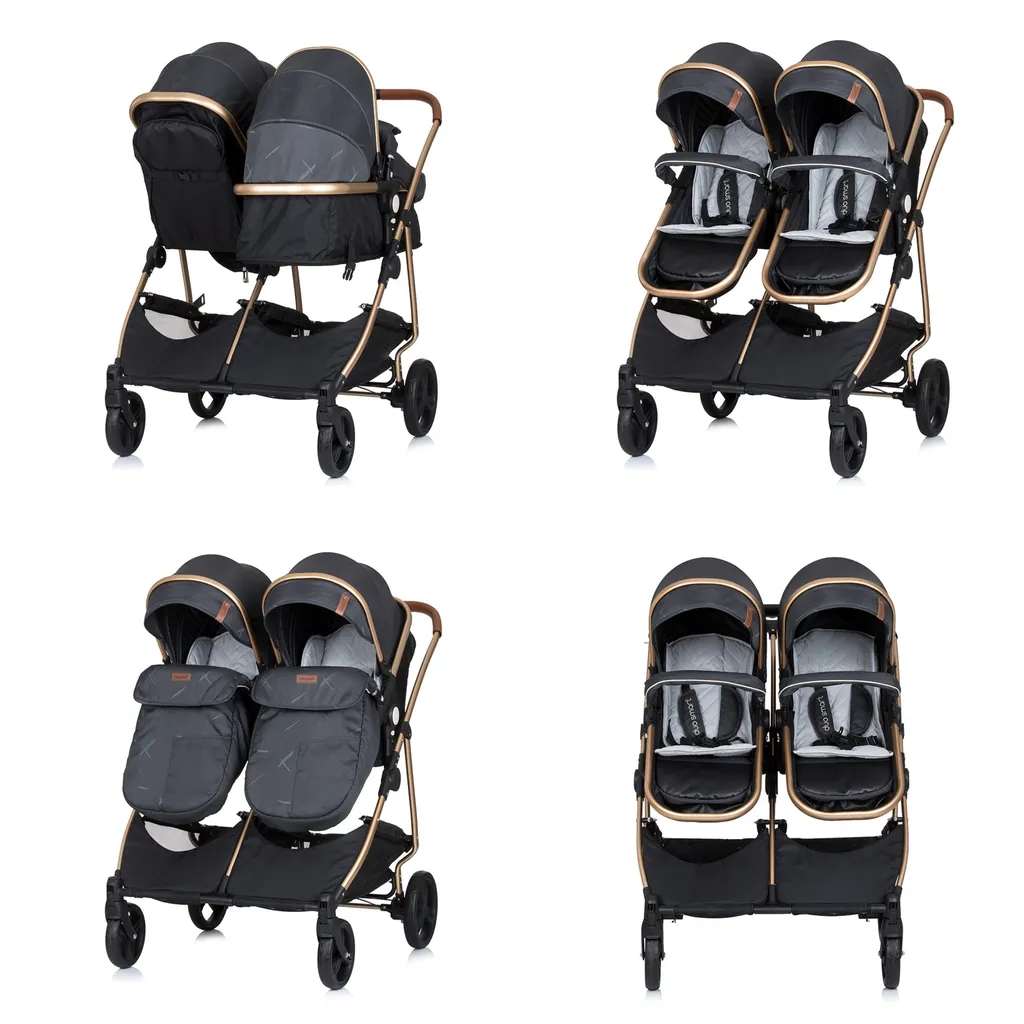 Chipolino Geschwisterkinderwagen Duo Smart Klappbar Umbaubar Verstellbar Fußsack Dunkelgrau