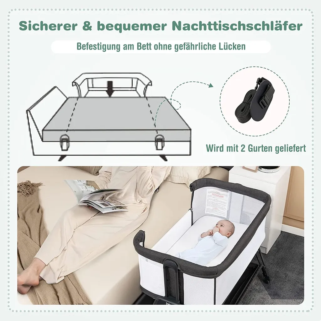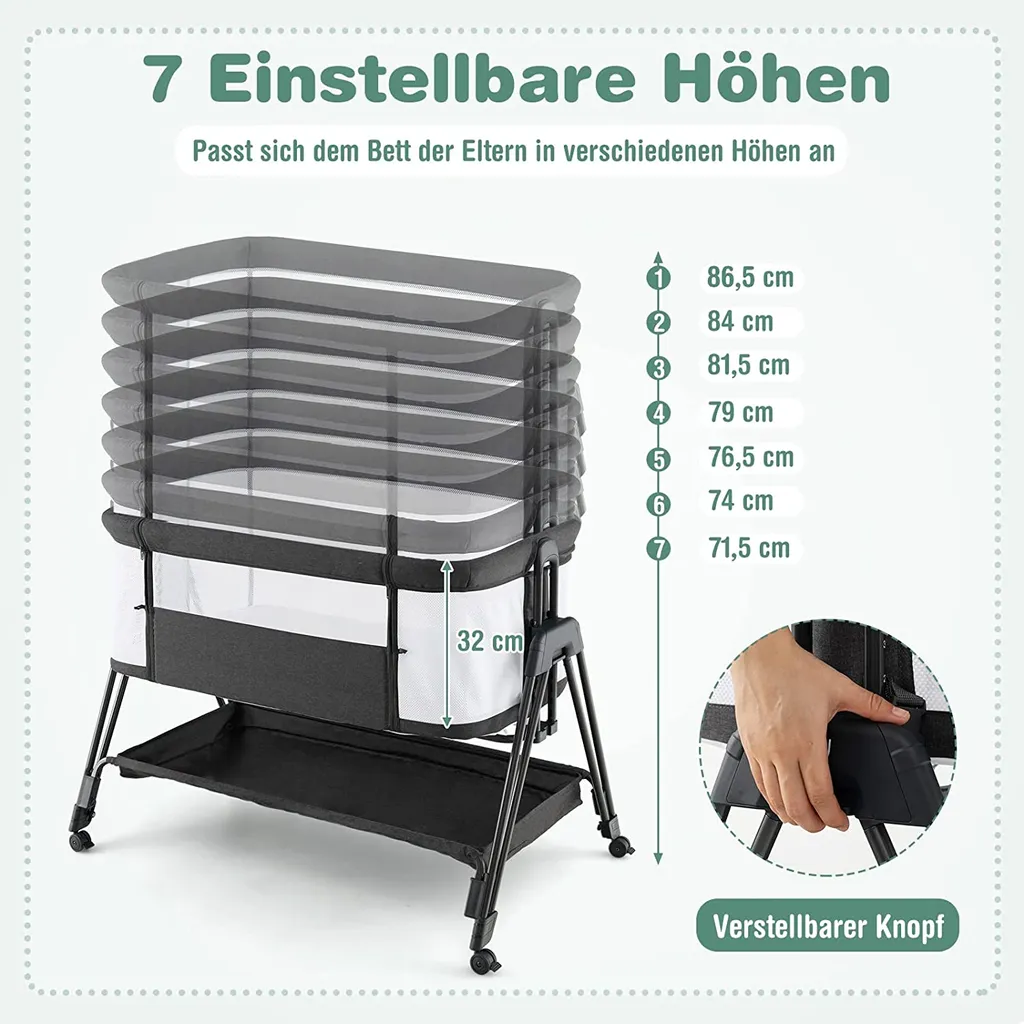 COSTWAY 2 In 1 Beistellbett & Stubenwagen Klappbar, Tragbare Babybett Mit 7 Verstellbaren Höhen & Matratze & Tragetasche & Gurte, Verstellbare Reisebett Für Neugeborene Bis 6 Monate (Dunkelgrau)