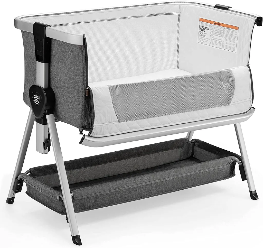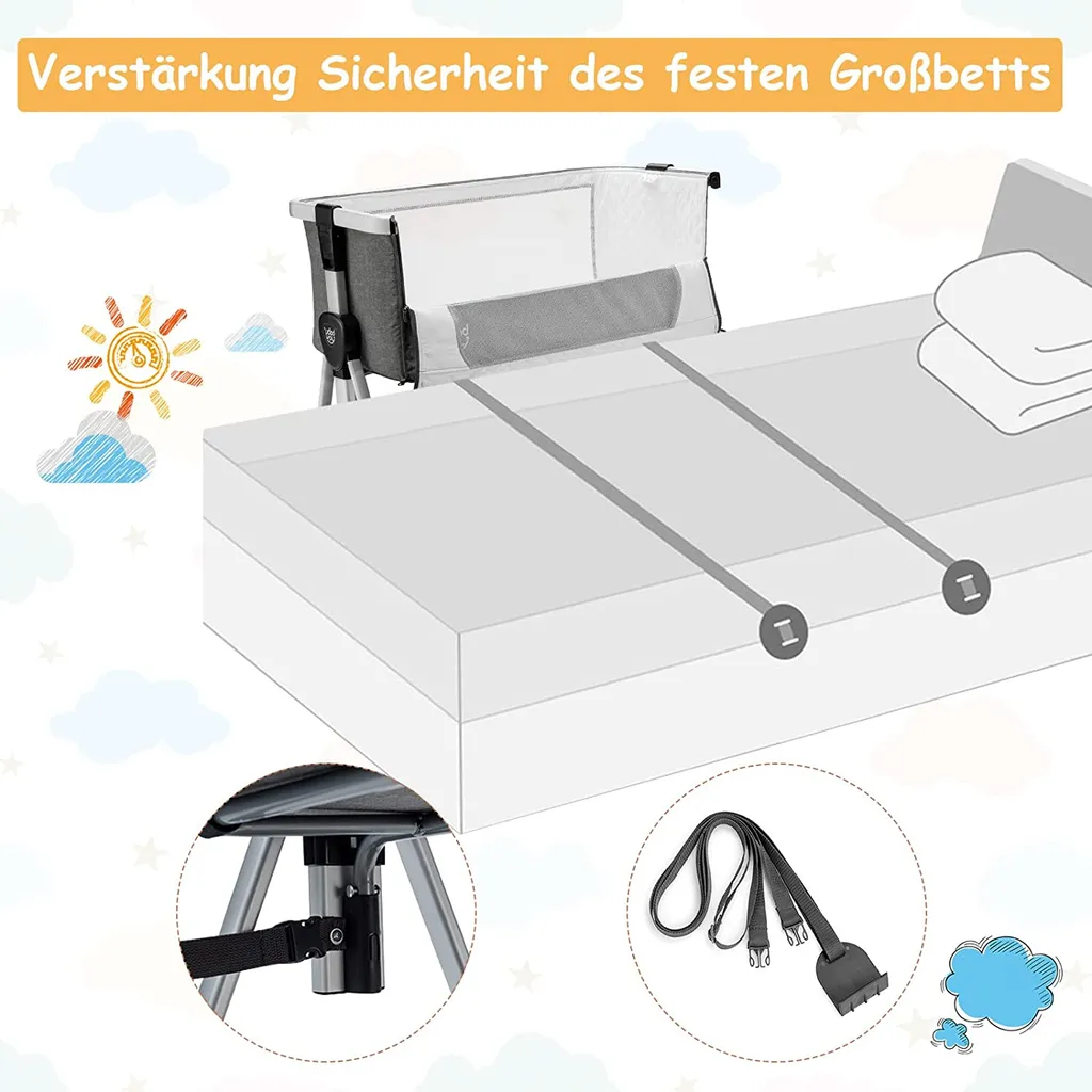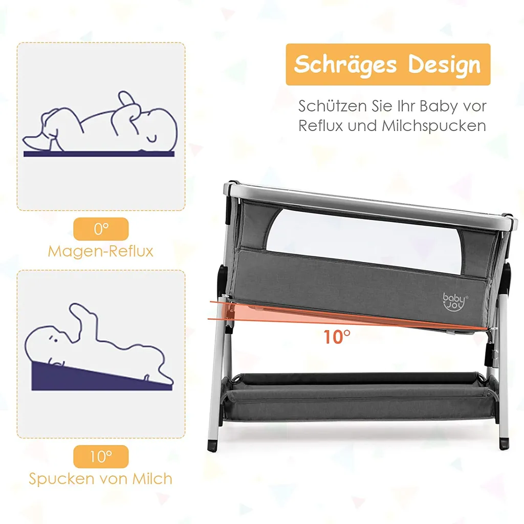COSTWAY 3 In 1 Beistellbett & Babywiege & Reisebett Klappbar, Babybett Mit 7-Fach Verstellbarer Höhe, Tragbares Babywiege Mit Sicherheitsgurt, Netzfenster, Matratze, Bodenkorb & Rädern (Dunkelgrau)
