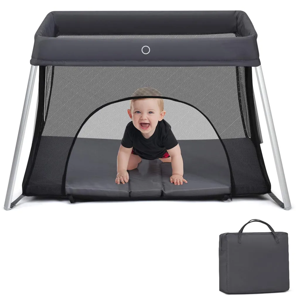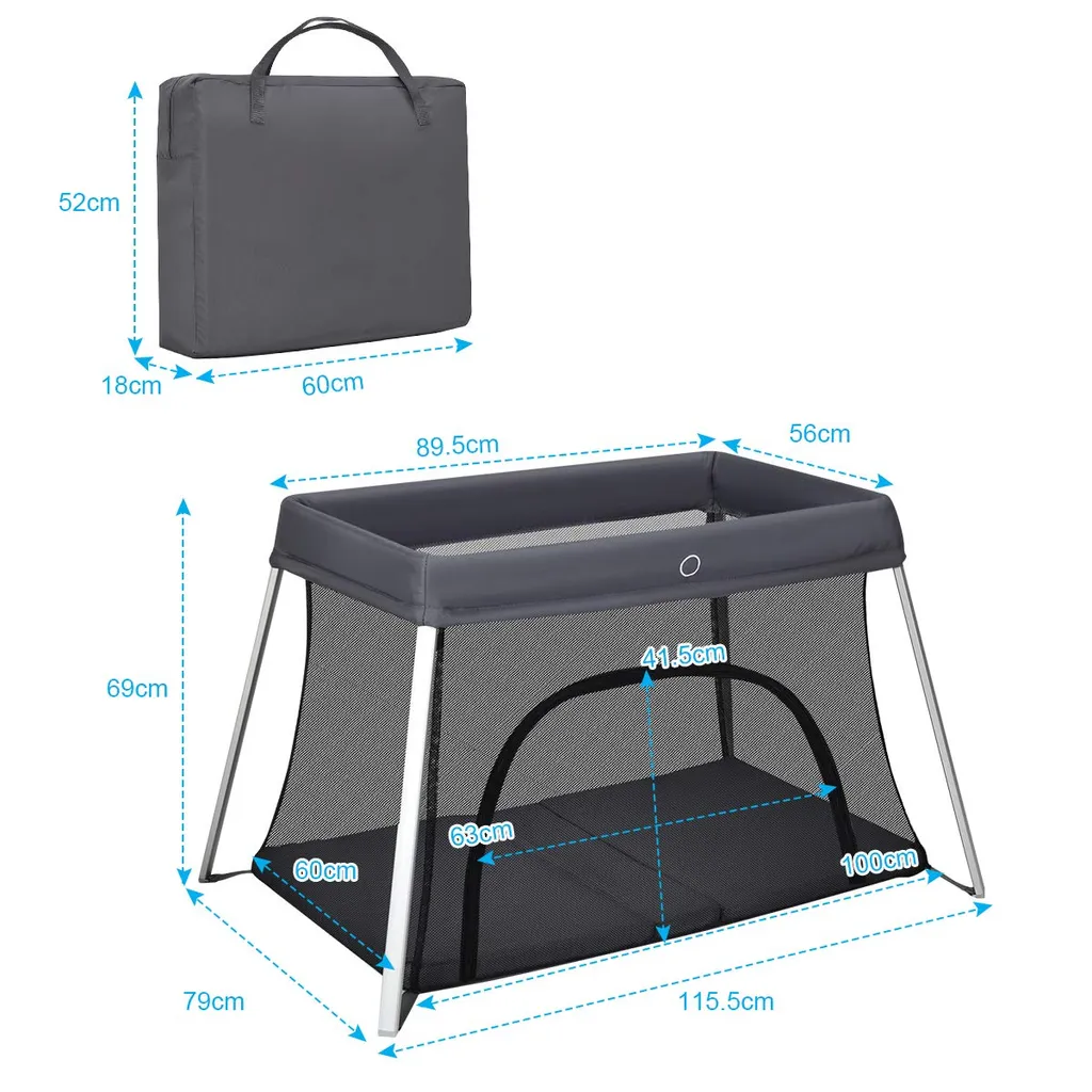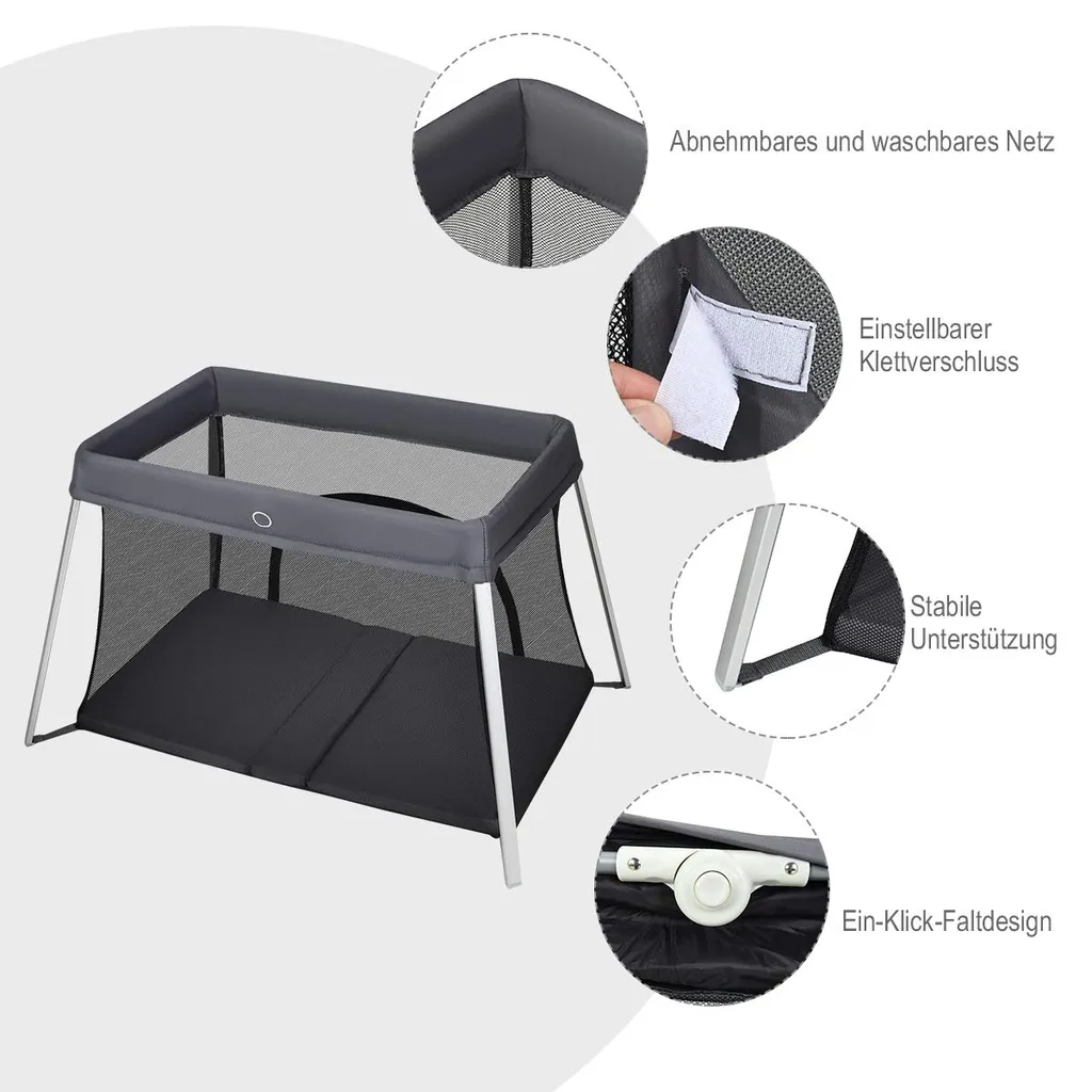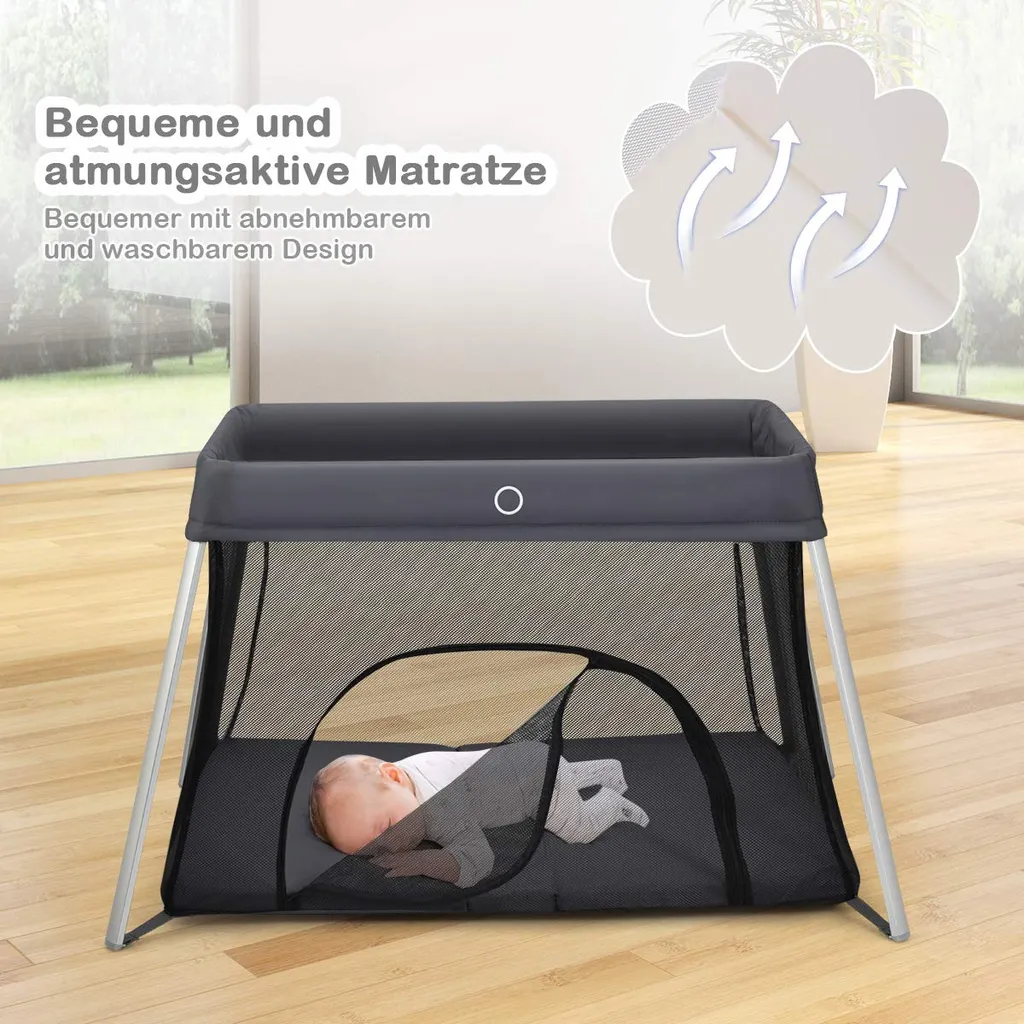 COSTWAY Babybett Klappbar, Reisebett Mit Matratze Und Tragetasche, Laufstall, Babyreisebett, Spielstall, Netzlaufgitter Für Kleinkinder, Säuglinge Und Neugeborene Dunkelgrau