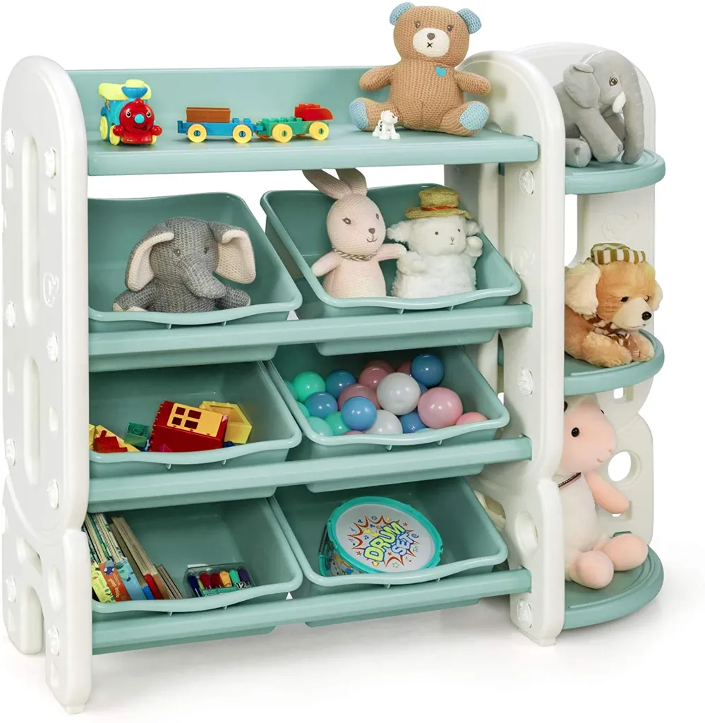 COSTWAY Kinder Spielzeugregal Mit 6 Aufbewahrungsboxen Und 4 Ablagen, Eckregal Aus Kunststoff, Kinderregal, Aufbewahrungsregal Ideal Für Kinderzimmer Und Kindergarten