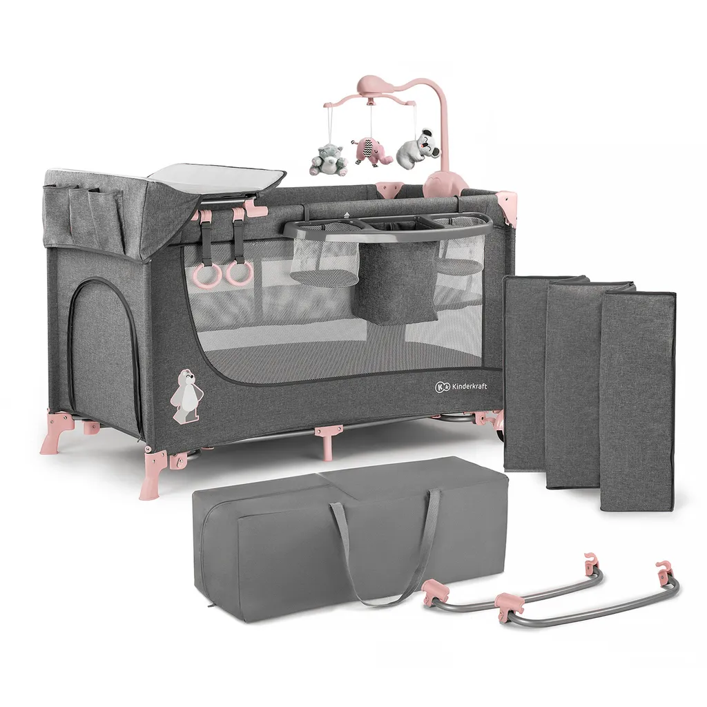 JOY-Reisebett 2in1 Von Kinderkraft Mit Zubehör Rosa
