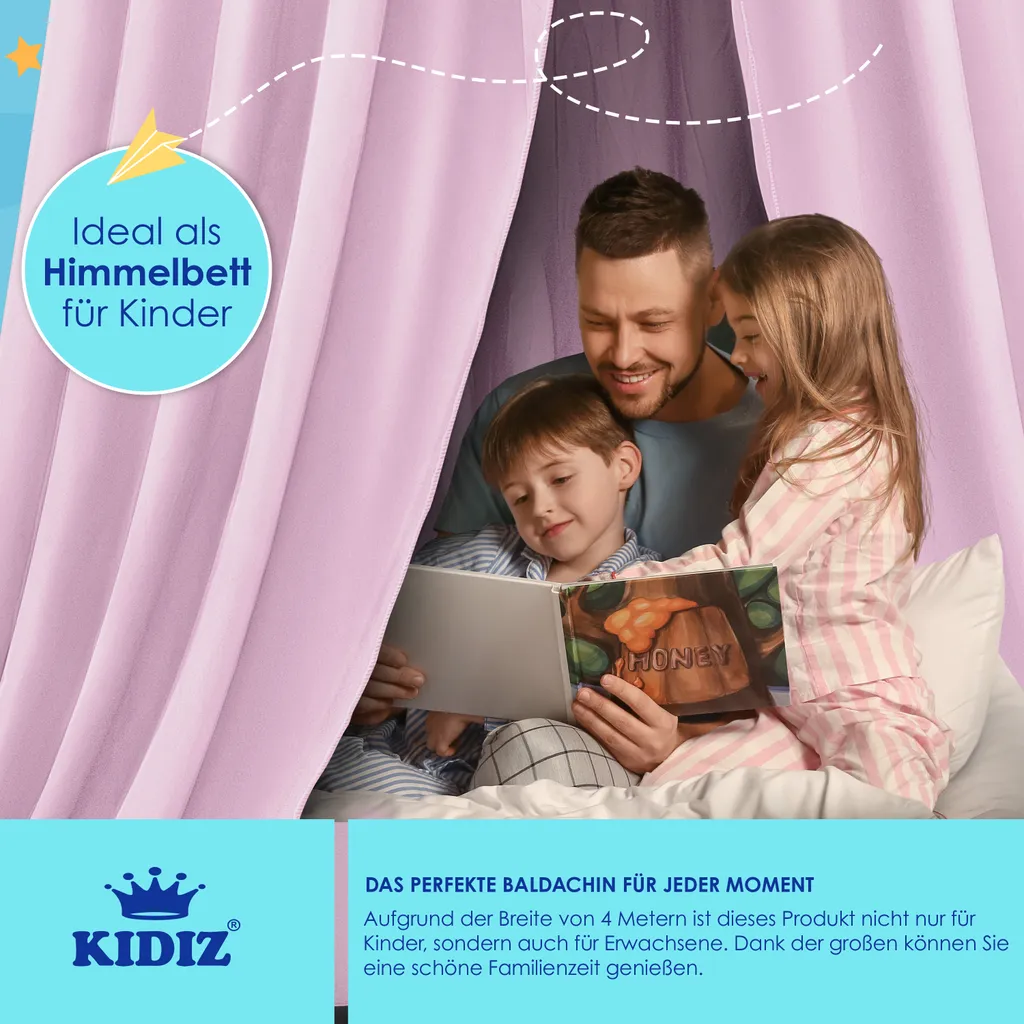 KIDIZ® Baldachin Kinderzimmer Betthimmel Babybett Für Schlafzimmer Inkl. Aufbewahrungstasche | Ohne Bohren | Saumlänge Ca. 270cm | Moskitonetz Insektenschutz Kinder Spielzelte, Farbe:Rosa