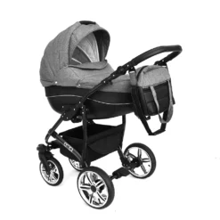 LUXUS Kombi Kinderwagen 3 In 1 Komplettset – NEU Mit Kunstlederelementen Und Luftreifen Silber