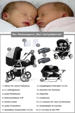 ZEKIWA Zwillingskinderwagen Twins Special, Dessin: „Kakao / Schwarz“