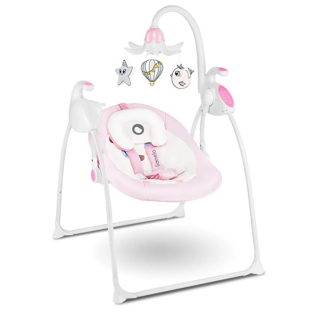 Lionelo Robin Baby Wippe Babyschaukel Elektrisch Mit Liegefunktion Von 0 Bis 9 Kg Moskitonetz Melodien Spieluhr Rosa