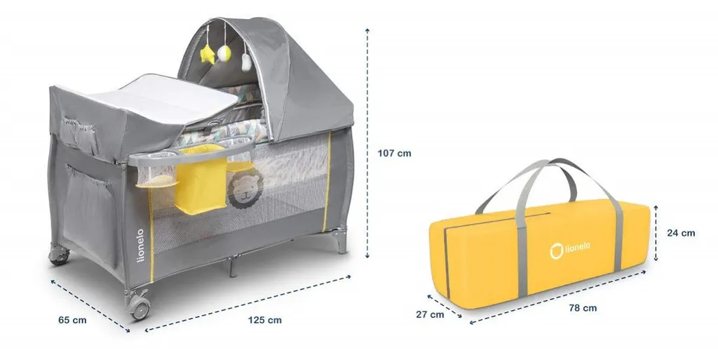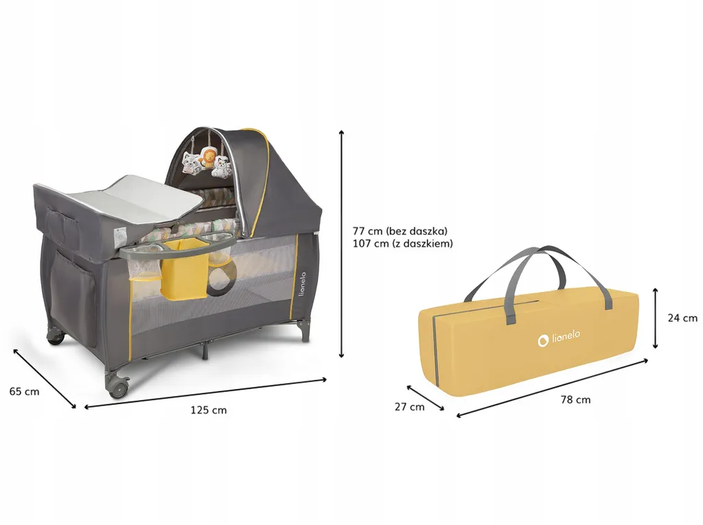 Lionelo Sven Plus In GELB Kinder Baby Reisebett Mit Wickeltisch Kinderbett Babybett Balachin Moskitonetz Urlaub Reise Laufstall Wickelauflage Spieluhr