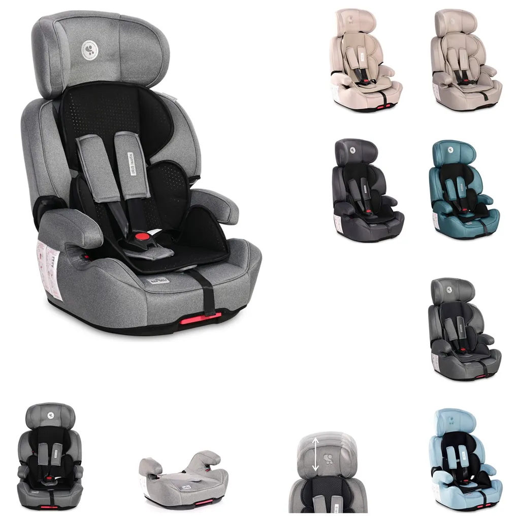 Lorelli Kindersitz Iris Isofix Gruppe 1/2/3 (9 – 36kg) Boostersitz Weiche Kissen Grau/schwarz