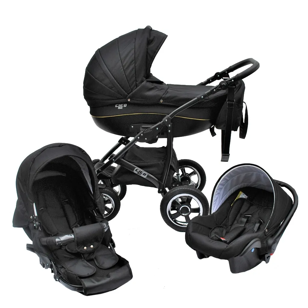 LUXUS Kombi Kinderwagen 3 In 1 Komplettset – Schwarz