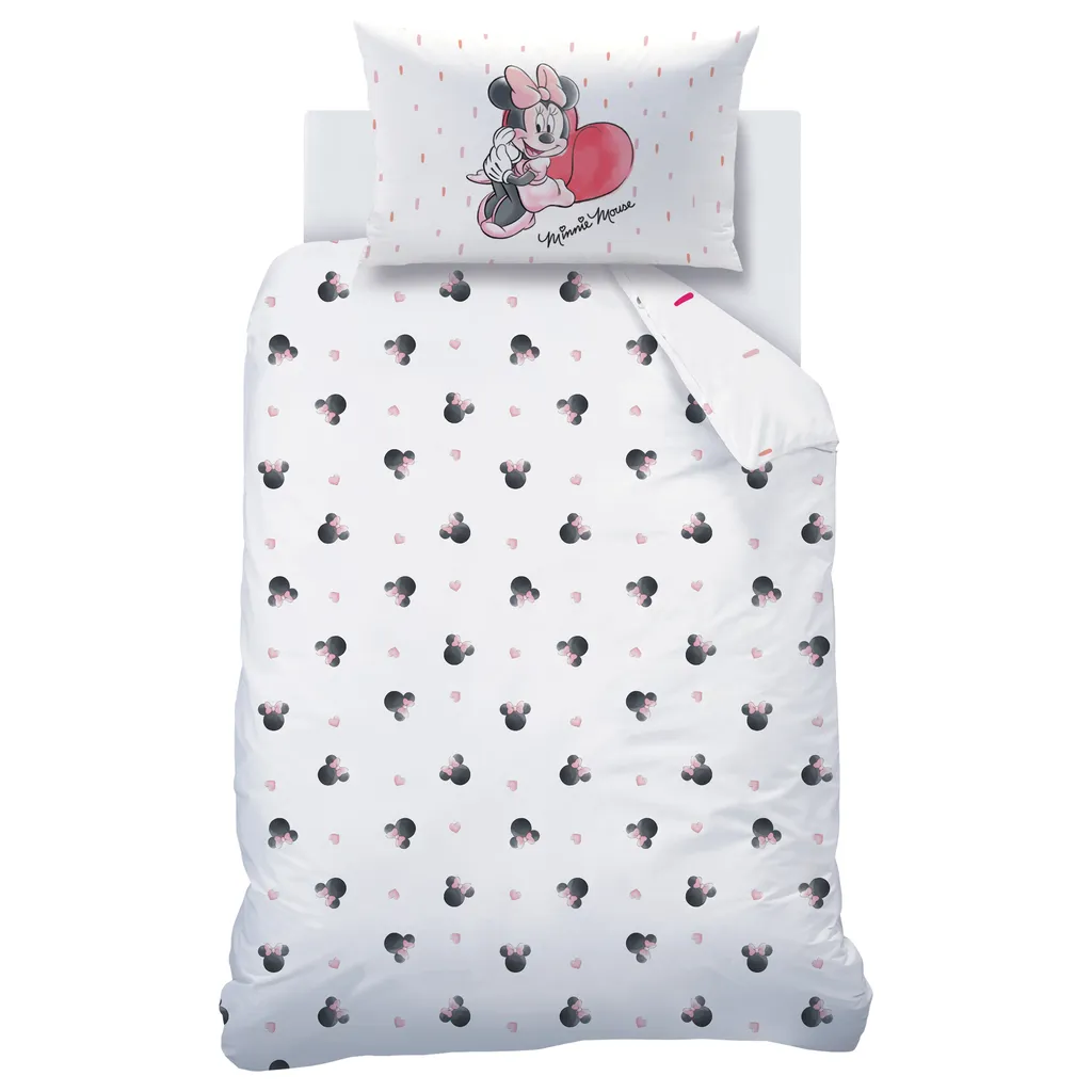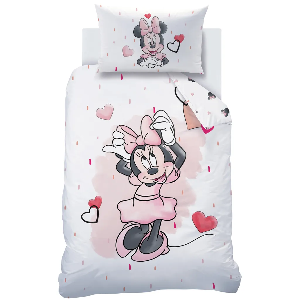 Minnie Mouse Babybettwäsche 100×135 + 40×60 Cm 2 Tlg., 100 % Baumwolle In Biber, Süße Disney Minnie Maus Kinderbettwäsche Mit Vielen Herzchen In Rosa / Zartrosa, Weiß & Rot