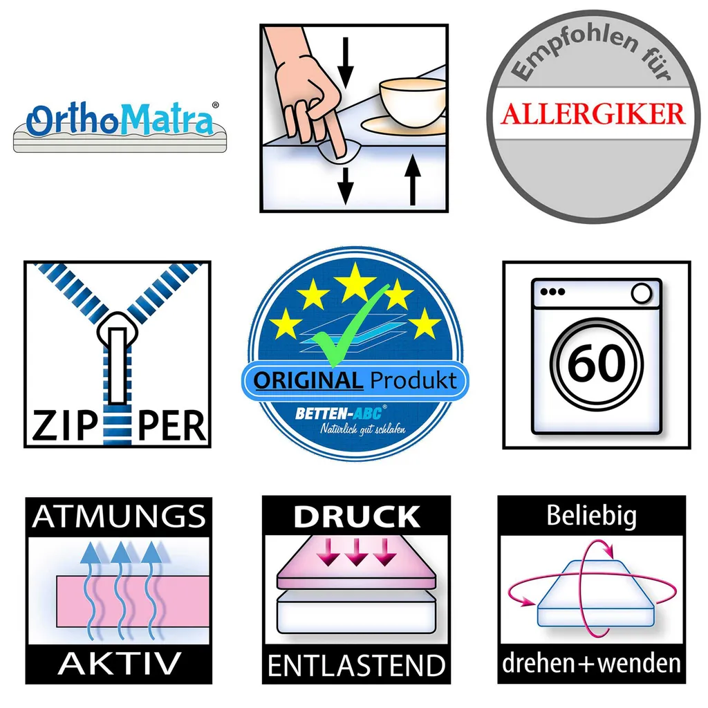 | Zusätzliche Varianten | OrthoMatra Bambini Babymatratze, Bezug waschbar, Gesamthöhe ca.12 cm, mit Klimawatte : 60 x 120 cm, OrthoMatra Bambini Babymatratze, Bezug waschbar, Gesamthöhe ca.12 cm, mit Klimawatte : 70 x 140 cm, OrthoMatra Bambini Babymatratze, Bezug waschbar, Gesamthöhe ca.12 cm, mit Klimawatte : 70 x 160 cm, OrthoMatra Bambini Babymatratze, Bezug waschbar, Gesamthöhe ca.12 cm, mit Klimawatte : 80 x 160 cm, OrthoMatra Bambini Babymatratze, Bezug waschbar, Gesamthöhe ca.12 cm, mit Klimawatte : 80 x 180 cm |