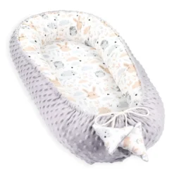 Babynestchen Set Neugeborene 90×50 Cm Minky – Kuschelnest Baby Nestchen 5-teilig Kokon Eule Hellgrau