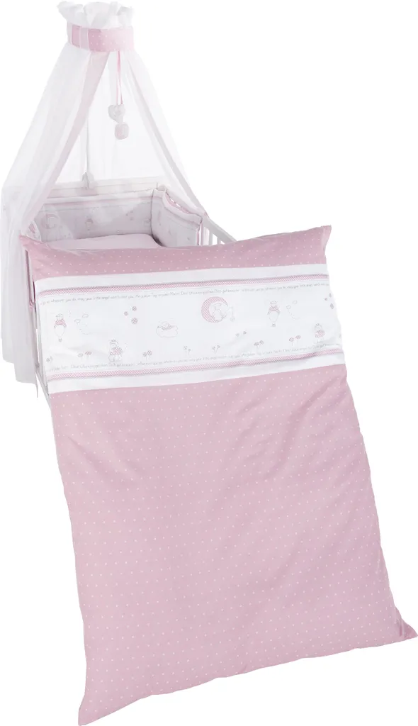 Roba Kinder-Bettgarnitur 4-tlg, ‚Glücksengel Rosa‘, Set Mit Bettwäsche 100x135cm, Nestchen, Himmel