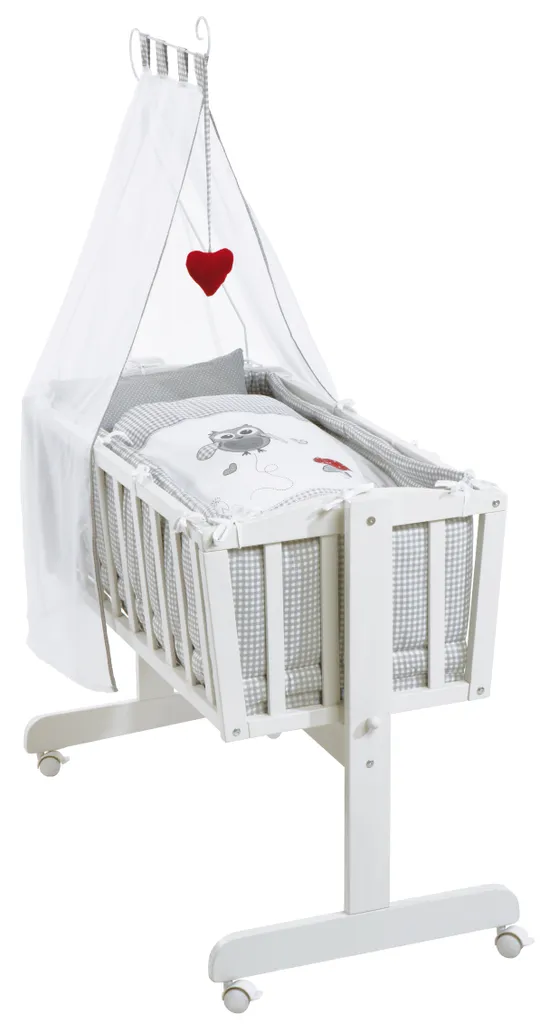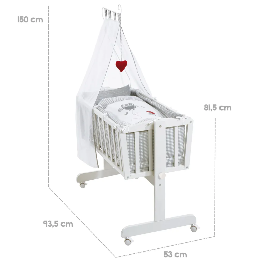 Roba Komplettwiegenset ‚Adam & Eule‘ (40x90cm), Weiß, Mit Feststellfunktion, Inkl. Ausstattung