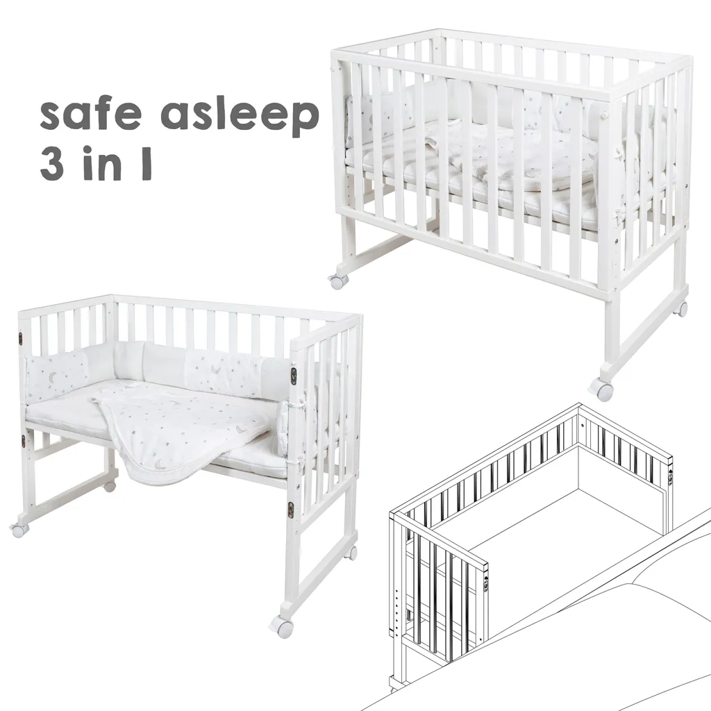 Roba Safe Asleep® Stubenbett 3 In 1 „“Sternenzauber““, Beistellbett Weiß, Babybett & Bank, Mit Zubehör