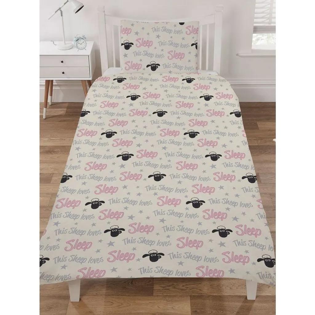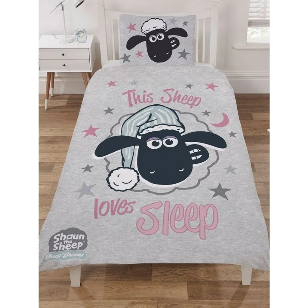 Shaun The Sheep – Bettwäsche-Set „Loves Sleep“ AG125 (Einzelbett) (Grau/Schwarz/Pink)