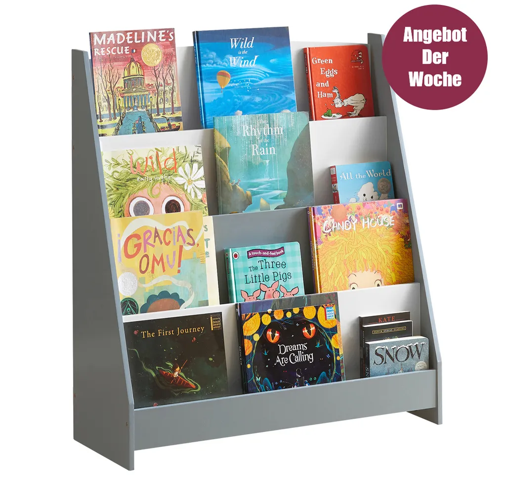 SoBuy KMB32-HG Kinder Bücherregal Kinderregal Aufbewahrungsregal Für Kinder Büchergestell Grau BHT Ca.: 80x88x30cm