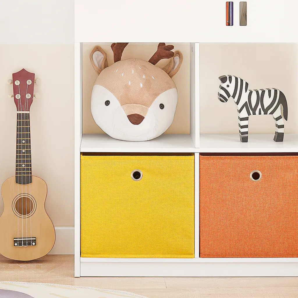 SoBuy KMB49-W Kinder Bücherregal Mit Haus-Design Kinderregal Mit 2 Stoffboxen Spielzeugregal Aufbewahrungsregal Für Kinder Spielzeug-Organizer Weiß BHT Ca.: 65x91x27cm