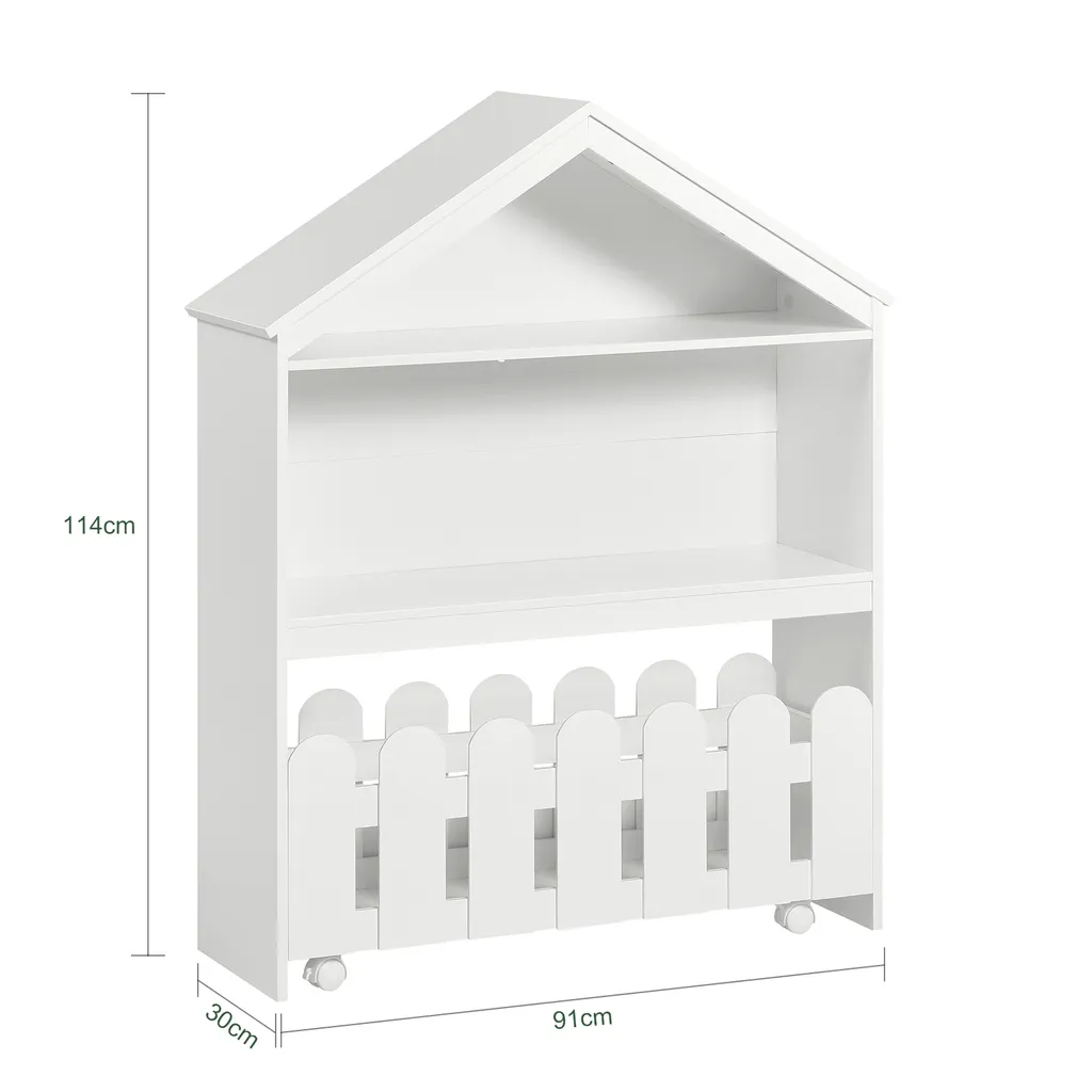 SoBuy KMB52-W Kinderregal Set 2-teilig Aufbewahrungsregal Für Kinder Spielzeugregal Bücherregal Mit Rollen Kinder Spielzeug-Organizer Regal Kinderzimmer Möbel BHT Ca.: 91x114x30cm