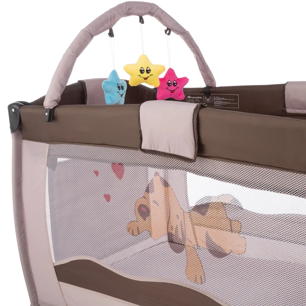 Tectake Kinderreisebett Hund 132x75x104cm Mit Wickelauflage Und Transporttasche – Braun