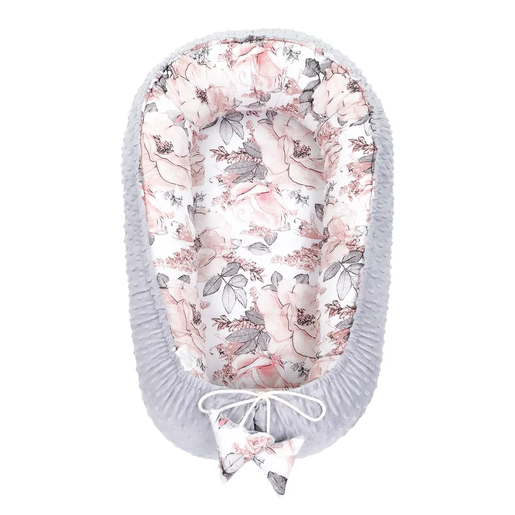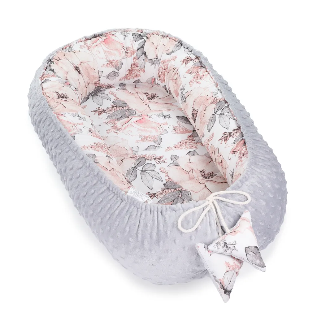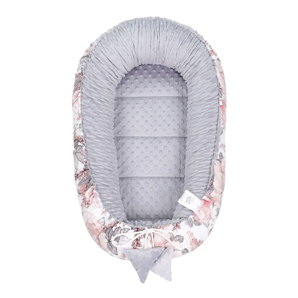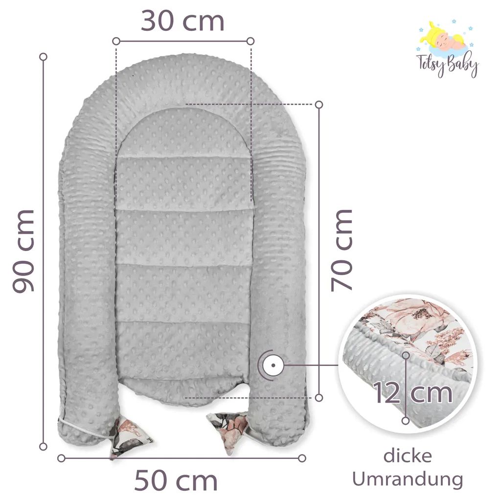 Warmes Nestchen Baby 90×50 Cm – Kuschelnest Neugeborene Nestchen Winter / Herbst Kokon Babynest Wilde Rose Grau