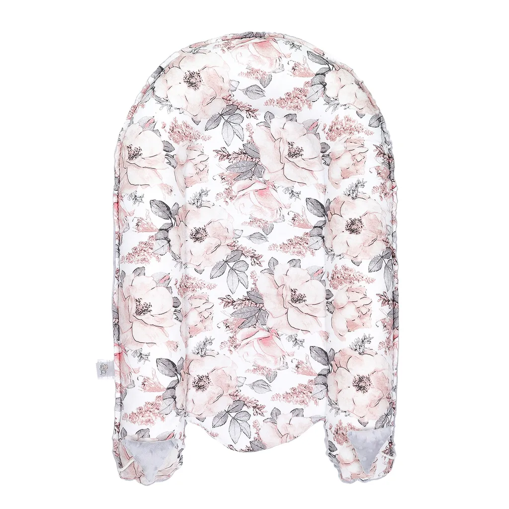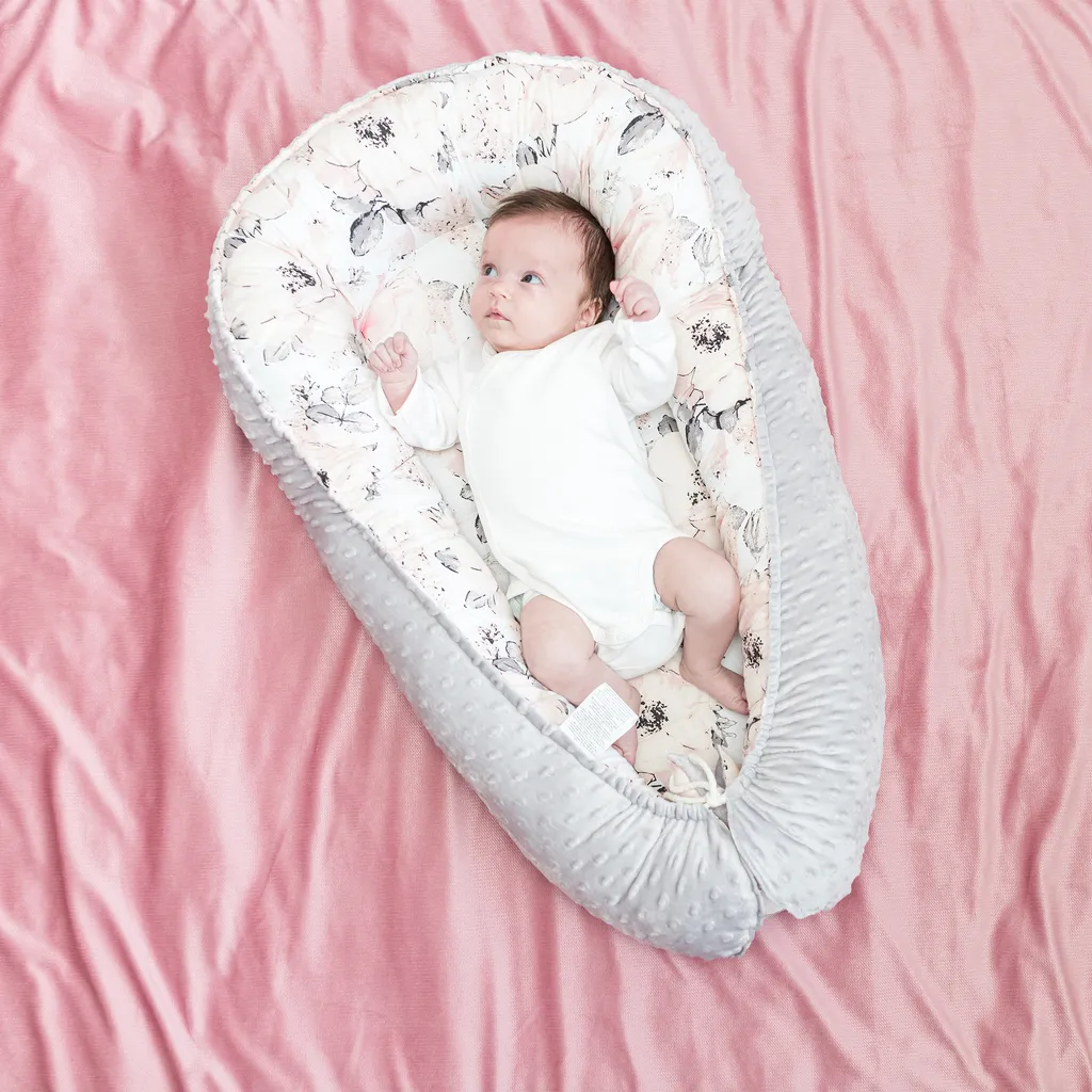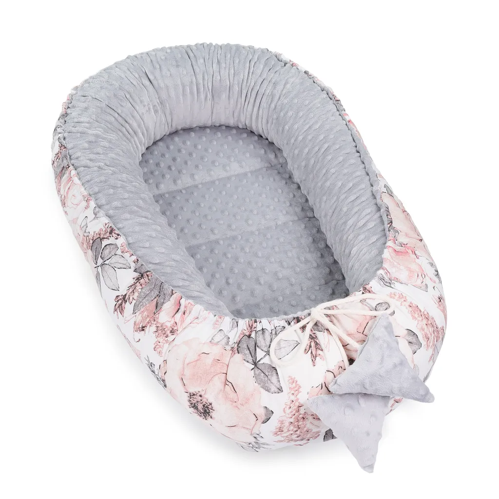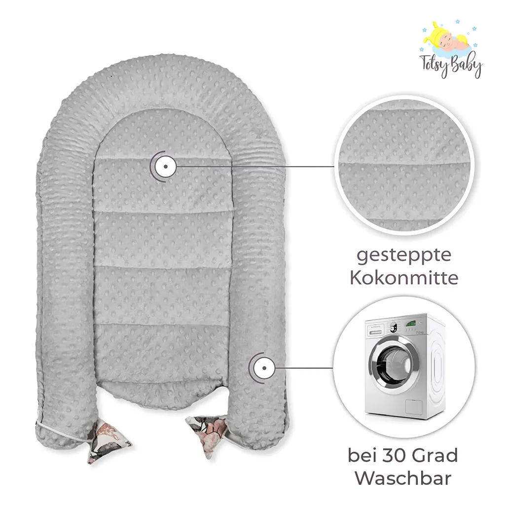 Warmes Nestchen Baby 90×50 Cm – Kuschelnest Neugeborene Nestchen Winter / Herbst Kokon Babynest Wilde Rose Grau