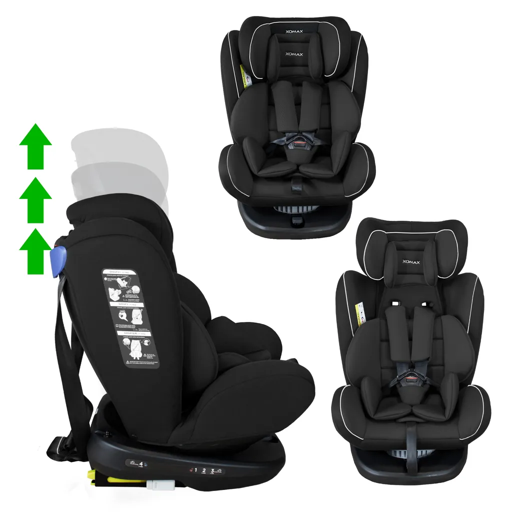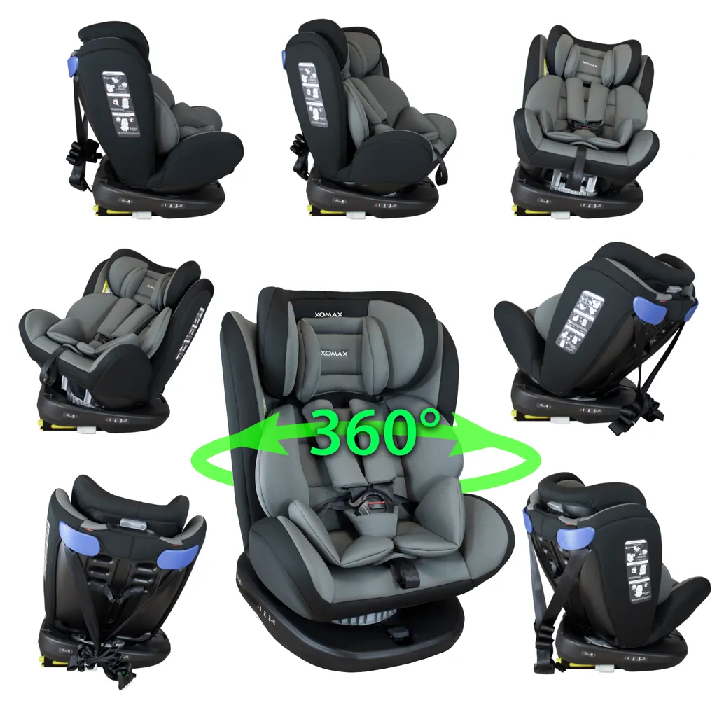 XOMAX 916 Auto Kindersitz Mit 360° Drehfunktion Und ISOFIX Für Kinder Von 0 – 36 Kg (Klasse 0, I, II, III) Farbe Schwarz/Grau